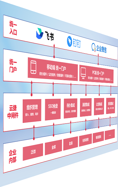 对协作平台提供支持服务,,支持企业应用与协作平台对接,,,,包含组织同步、、、消息集成、、、、待办集成等。。。支持目前主流的协作平台:钉钉、、、企微和飞书。。。。